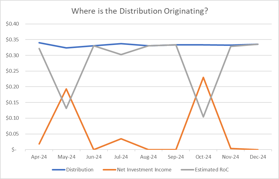 SPYT: When NAV Erosion Undermines An Essentially Sound Options Strategy | Seeking Alpha분배금 출처 분석 차트: 파란선(분배) vs 회색(ROC) 비중이 대부분 ROC로 채워져 있다.